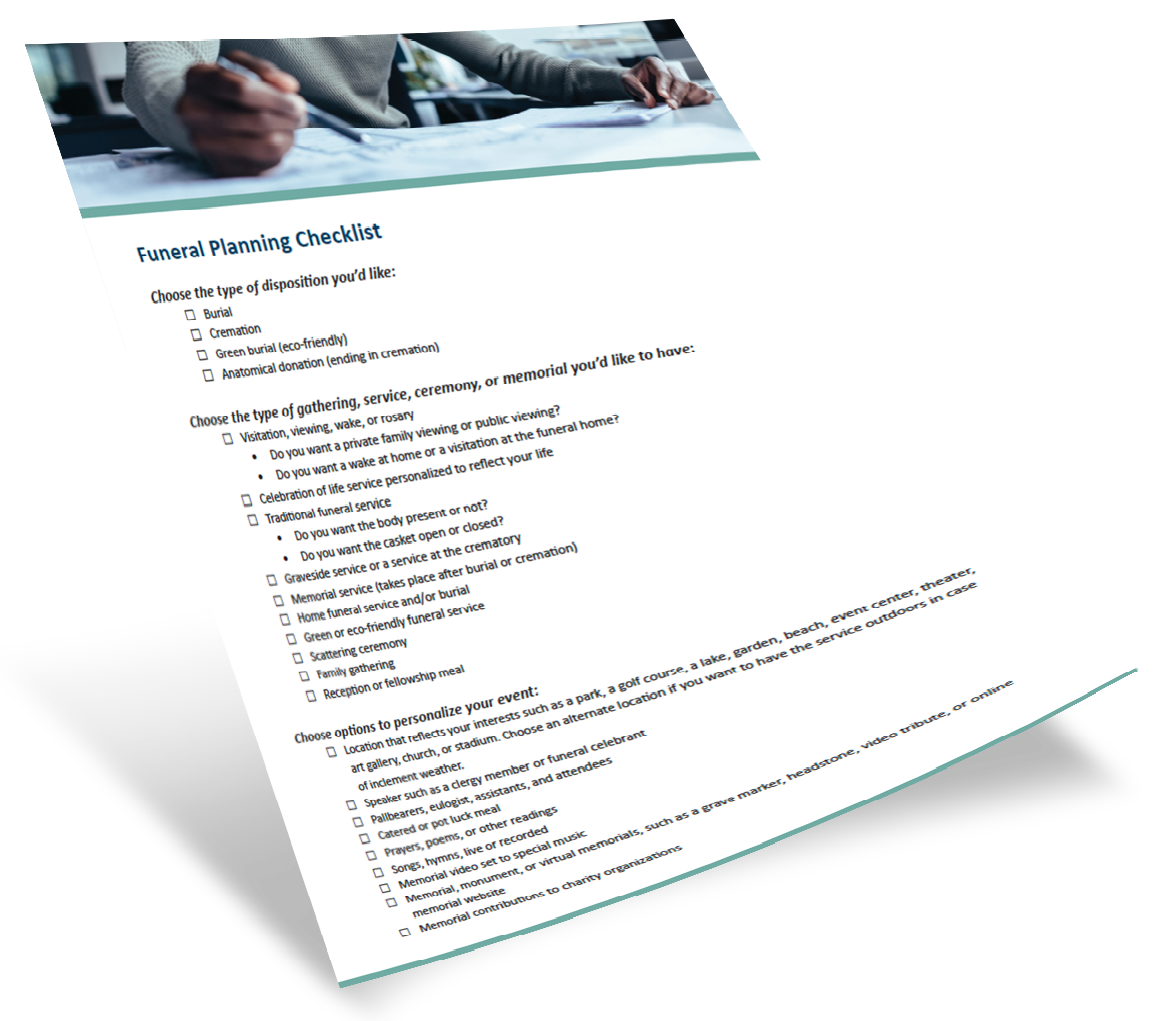 Download this checklist to make sure you aren’t missing any important steps when planning ahead for funeral wishes.